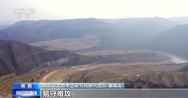 咸阳市文物考古研究所研究馆员谢高文:为何在这个地方放粮食,可能古代先人注意到地理位置的重要性,它三面环水,一面环台地,易守难攻,再一个就是利用水运,通过水来运输粮食,然后集中管理,再重新分配。